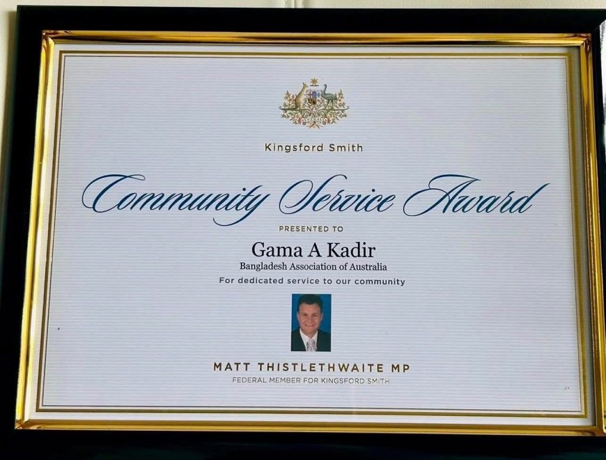 সিডনি তথা অস্ট্রেলিয়ার বাঙালি কমিউনিটির সর্বজনপ্রিয় ব্যক্তিত্ব গামা আব্দুল কাদির পেয়েছেন ‘কিংসফোর্ড স্মিথ কমিউনিটি সার্ভিস অ্যাওয়ার্ড’। গত ২০ নভেম্বর বৃহস্পতিবারে সিডনির বোটানি হলে এক আড়ম্বরপূর্ণ অনুষ্ঠানে কমিউনিটিতে দীর্ঘদিন নিরলস সেবার স্বীকৃতি হিসেবে বিশেষ এই সম্মাননা তুলে দেন অস্ট্রেলিয়ার অভিবাসন ও পররাষ্ট্র উপমন্ত্রী ম্যাট থিস্টলওয়েট এমপি। এসময় উপস্থিত ছিলেন বাংলাদেশ আওয়ামী লীগ অস্ট্রেলিয়ার সভাপতি ড. সিরাজুল হক।