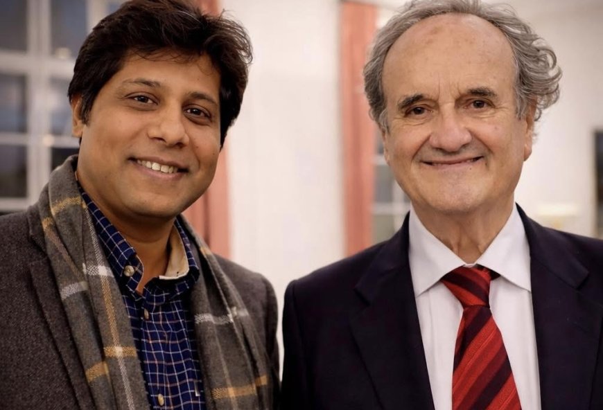 মার্ক টালির সাথে লন্ডনবাসী সাংবাদিক ও লেখক বুলবুল হাসান। ছবি- বুলবুল হাসান।